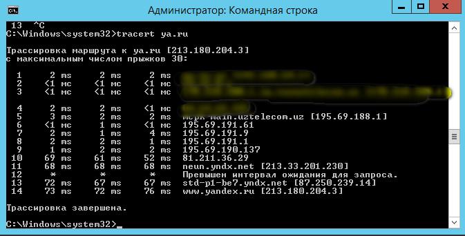 Трейс с сервера, на 9-10 хопе видно, что скачок идет уже на той стороне. Скрытый текст: