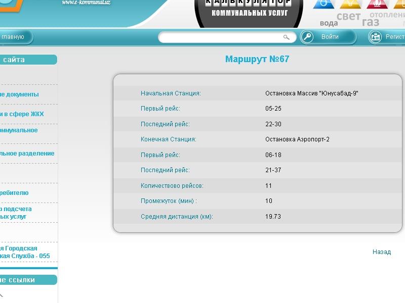 "Отличный ресурс! ... Было бы замечательно добавить в справочный раздел банк всевозможных образцов-бланков + возможность распечаток (от регистрации по месту жительства до квитанции по оплате ком.услуг). И еще одно предложение: возможность создания закрытых комнат ТСЧЖ с доступом всех жителей и так - по всем махаллям и районам. Ну это так, план на 5-ти или 10-тилетку, когда в каждой квартире будет по интернет-юзеру." "Не нашла нормативы по оплатам в ЖКХ, в частности по тарифам на ГВС и их перерасчетам или плохо искала" "Сайт хороший, но на некоторых страницах проблемы с кодировкой. Например если захожу на страницу http://e-kommunal.uz/ru/terra/mahinfo.php?ElemID=217 из меню - Территориальные подразделения – Махалли - Алмазарский район - А. Навоий, то выходит вот такой текст: "� x^�=ks Ǒ��_1Z� yē � �(�� K�BR��\ � � �]xw��lU�R '%����R�ر���骨mZ�忰�". И так по всем подменю по "Территориальным подразделениям"." |
