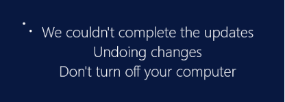 Винда скачала какой-то апдейтик. Попросила перегрузиться и проапдейтиться. Рестарт был очень долгим и даже через 30 мин. не перезагрузился. Вырубили ноут вручную. После старта сначала вышло сообщение с процентами апдейта а через некоторое время «We couldn’t complete the updates, Undoing changes. Don’t turn off your computer.»