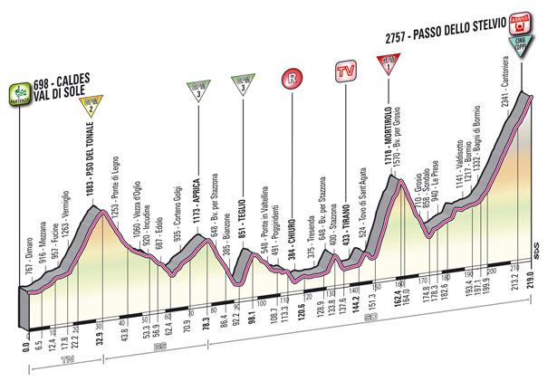 Думаю генеральщики начнуть пробовать ногу.... Да кстати профили и прочее даже лучше чем на сайте самой Джиро тут - http://www.gazzetta.it/Speciali/Giro...l?t=12&lang=en По горкам - вообще есть Climb Details с буквально пометровым разложением уклонов. Но 19 будет лучше! |