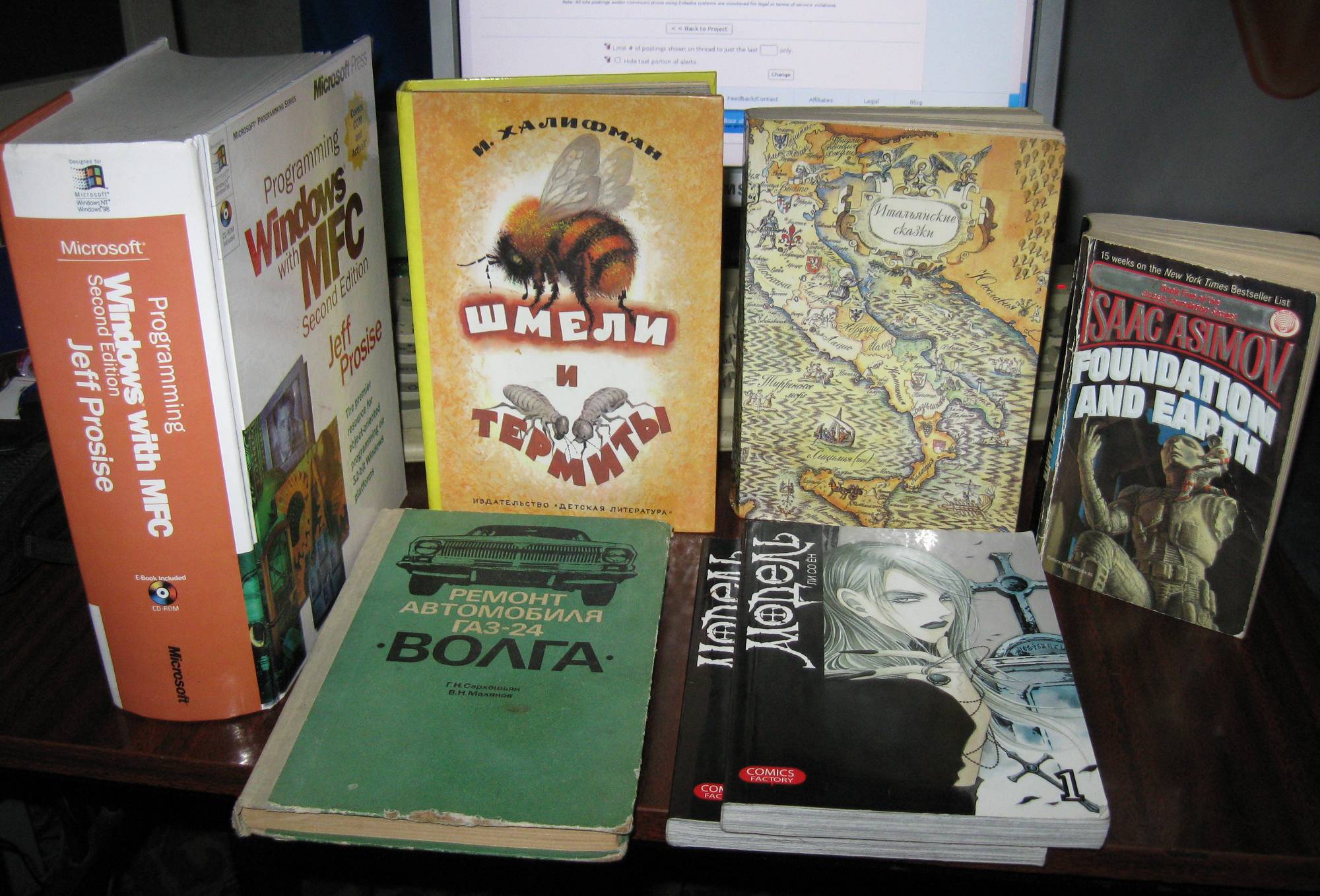 https://img.uforum.uz/thumbs/syybaaf743072.jpg Programming Windows with MFC, second edition, Jeff Prosise, Microsoft Press, 1999. Шмели и термиты, И. Халифман, "Детская Литература", 1972. Итальянские сказки, Сборник, "Правда", 1991. Foundation and Earth, Isaac Asimov, Ballantine Books, 1987. Ремонт автомобиля ГАЗ-24 "Волга", Г. Н. Сархошьян, В. Н. Малянов, "Транспорт", 1980. Модель, том1,2, Ли Со Ён, "Фабрика Комиксов", 2009. Покупал в магазине напротив Камолота, все, кроме "Волги" и Азимова, в идеальном состоянии и совершенно недорого. |