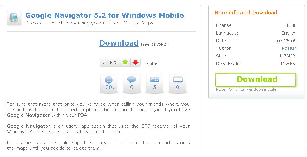 В этом треде произошла некоторая путаница из-за схожести названий продуктов Google Navigation и Google Navigator. Второй видимо в последствие был переименован в Global Navigator. Google Navigation - только для Android, бесплатный, от Google Global Navigator - только для Windows Mobile, $59, от pdafun.net Цитата: