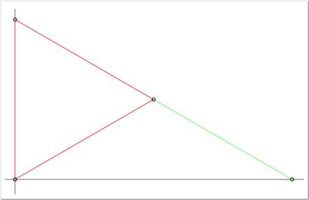 Что можно делать этой линейкой: 1)Проводить прямые и строить их по двум точкам. 2) Прикладывать начало отмеченного отрезка к уже построенной точке, совместив край линейки с данной прямой и затем отмечать на этой прямой второй конец ("отсекать отрезок"). Таким образом, меченой линейкой всегда можно построить отрезок, равный целому числу отрезков величины, равной отмеченному. Хотя идея задачи моя, точное решение принадлежит совсем другому человеку, но пока это личная тайна. Я же не только не смог точно построить, но даже не смог доказать своё построение. Даю единственную подсказку: постройте квадрат меченой линейкой! |