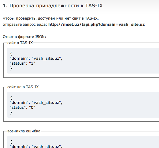 И еще такой вопрос, сейчас готовля для сайта ТПП страничку сайтов по бизнесу, хотелось бы рядом с названием сайта указать в тасиксе он или нет. У вас там есть одно api для этого... Ну как то по 50 запросов давать на страницу глуппо будет. |