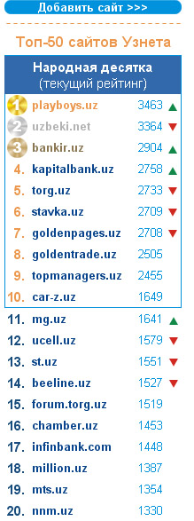 ), представитель которого, уважаемый Шерзод Каримов, не особо был за эту премию, насколько мне память не изменяет! Так что, как Вы сами видете, наличие некоторых сайтов, таких как goldenpages, torg и brandnews и др в числе организаторов или партнеров этой премии отнюдь не гарантирует призовые места. Все решает общественное голосование![]()