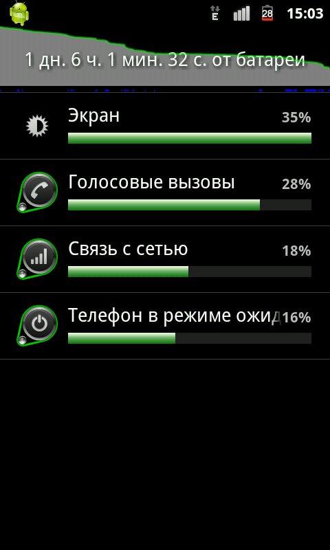 ![]() все это время - включена автосинхронизация (почта, календарь, контакты), выключен 3G (только EDGE), установка двух приложений с маркета, 4 электронных письма отправлено с вложениями, 10-12 фотографий, пара постов в Google+ ну и т.п. и т.д. на ночь передачу данных отключал. ну и звонков тоже 35... дальше эксперимент продолжать не буду (можно вполне продержаться до конца и второго рабочего дня) и поставлю на зарядку, т.к. вечером телефон до зарядки может и не доберется ![]()