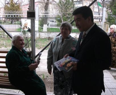 ![]() Муқимий номидаги мусиқали драма театрининг актёрлари ўзларининг драматик чиқишлари, қўшиқлари билан отахон ва онахонларнинг дилларини хушнуд қилдилар. ![]() ![]() Форумимиз қизлари билан нафақат ҳовлидаги қарияларнигина эмас, балки ичкарида ташқарига чиқа олмай ётиб қолган ёки ўтирган қарияларни ҳам йўқладик. Последний раз редактировалось Nigora Umarova; 11.04.2012 в 05:43. |