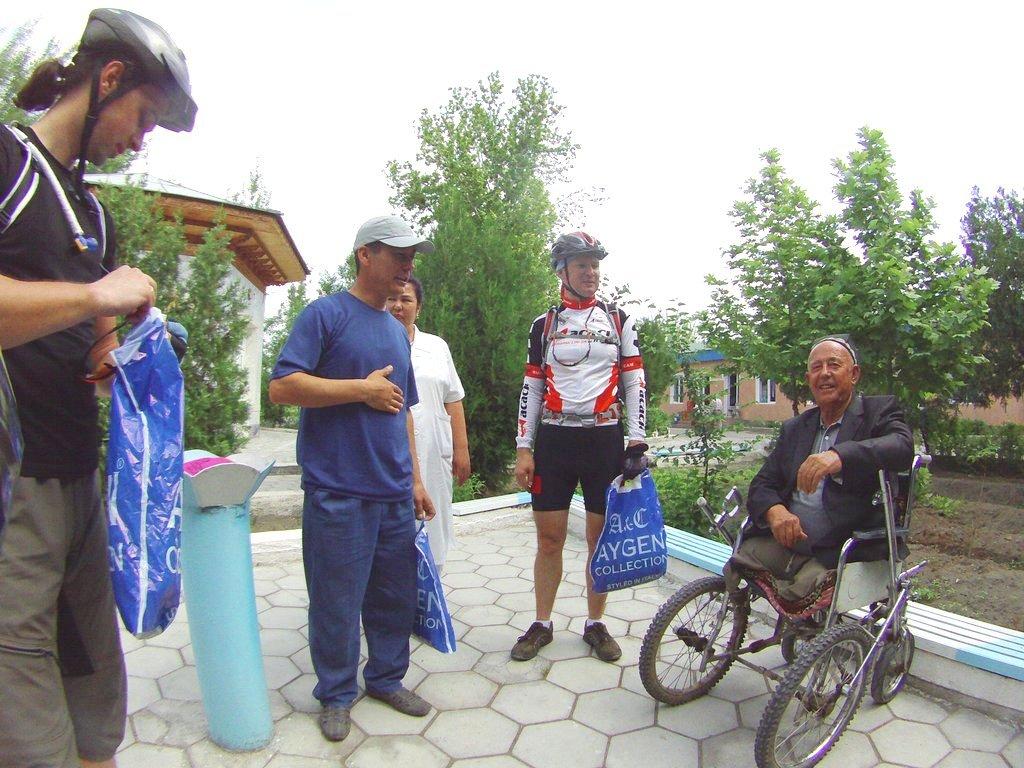 Планированный источник в Алтыарыке, находился на Республиканском санатории ветеранов войны и труда. Раз поедим туда накануне праздника, 67-летие Великой Победы, появилось намерение, поздравит ветеранов. Не хотелось зайти пустыми руками. По пути сходил на базар, купил полотенце, туалетные принадлежности... так, мелочь. Думаю, главное внимание. Идея понравилась и ребятам. Заранее позвонил знакомому врачу, договорились о место встречи, на том месте, у источника.