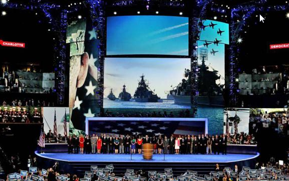 В Америке проходил съезд Демократической партии, отставной адмирал ВМС США выступал с речью, которая сопровождалась фоторядом.