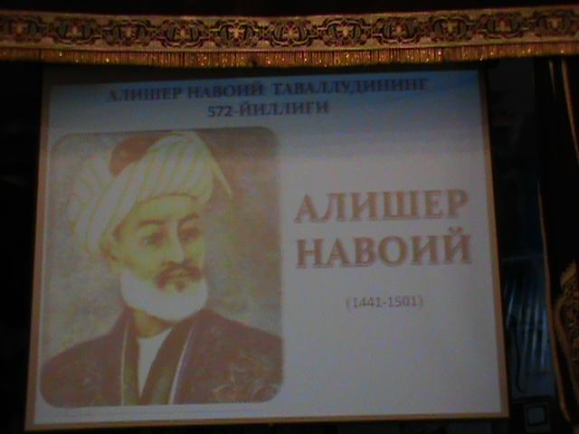 ![]() Barchaning qalbida o'z qo'shiqlari bila joy topa olgan hofiz Orolmirzo Safarov ham Navoiy g'azallari ijrosida, shuningdek shoir Erkin Vohidov qalamiga mansub "Dutorim tori ikkidur" so'zlari bilan tayyorlangan ashulasini va yana xalqimiz sevib eshitadigan bir nechta ashulalarini aytib tadbir ishtirokchilarining kayfiyatiga ko'tarinlik bag'ishladi: ![]() ![]() Ijodiy kechada ishtirokchilar Shoir E.Vohidovning "Navoiyni o'qimay qo'ysa" she'ridan ham bahramand bo'lishdi: ![]() Цитата: