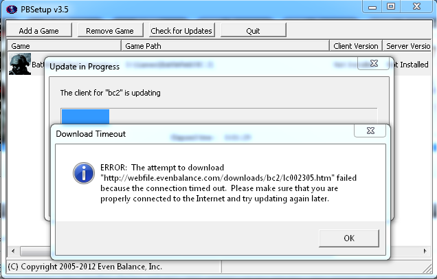 Оффтоп: Не могу обновить анти-чит (PunkBuster) для многопользовательской игры. Всё время пишет, что истекло время ожидания; проверьте подключение к интернету или попробуйте попытку чуть позже. Скрытый текст: