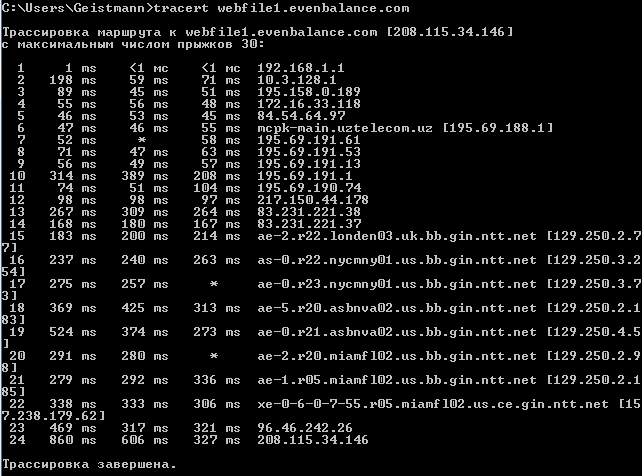 Сделал на всякий случай трасировку и пропининговал адресс. Я в этом всё равно не понимаю. Но вот что выдало: Скрытый текст: