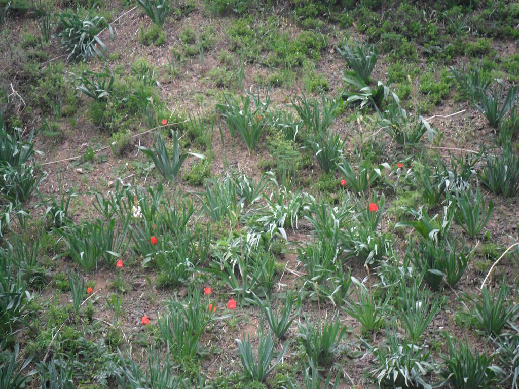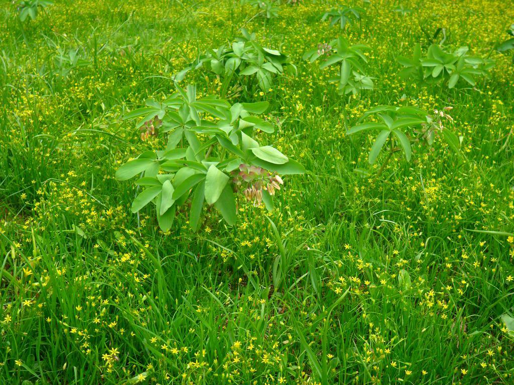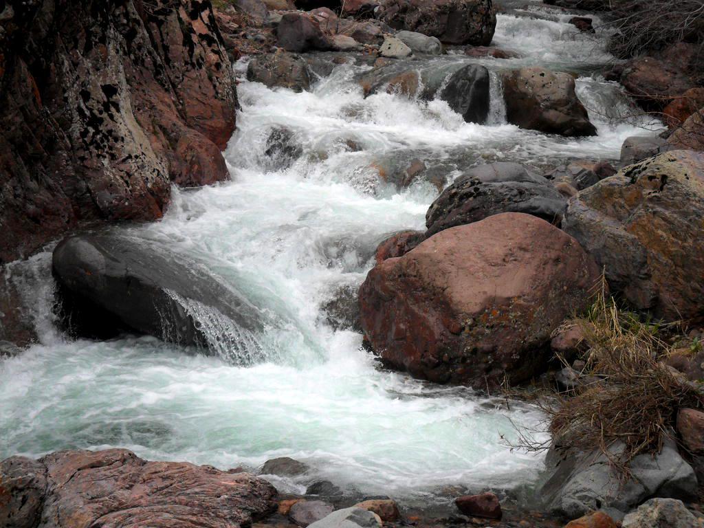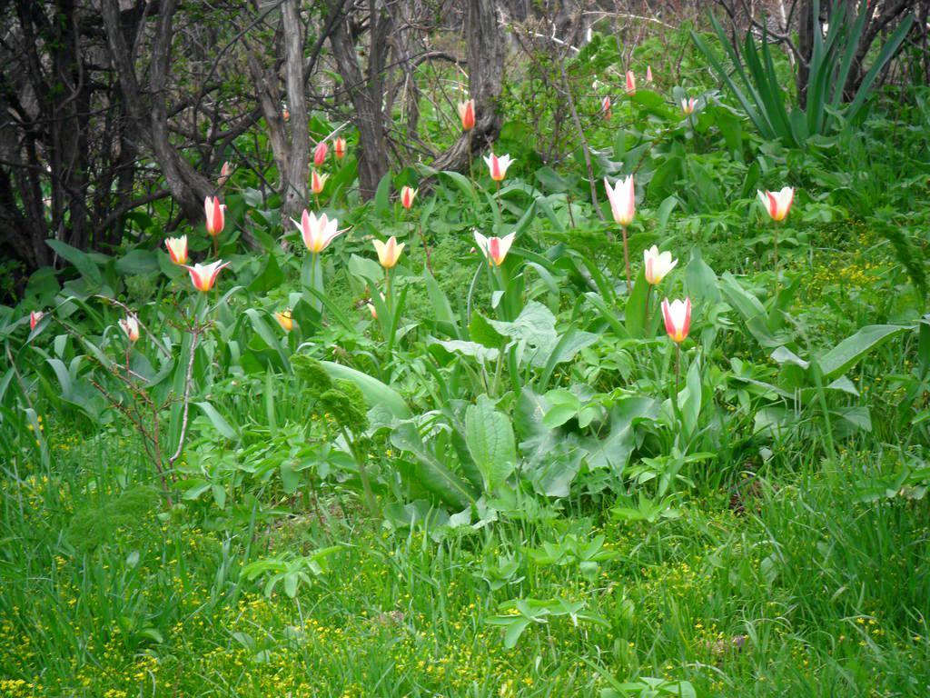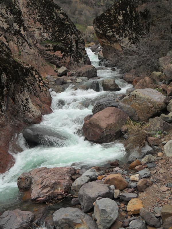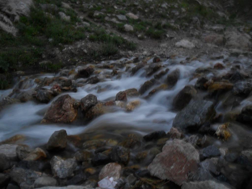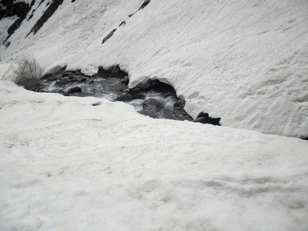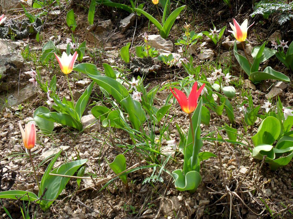 От обильного таяния Булак-су вздулась и несёт бурный мутный поток. Мох жадно впитывает влагу из камней и воздуха. Пробиваются ростки эремуруса (он же "матор", из которого самсу зелёную делают) Крокус алатавский, он же шафран, который почему-то называют подснежником. И ещё какие-то цветочки. Время тюльпанов пока не подошло, они расцветут, когда белым цветом распустится алча.