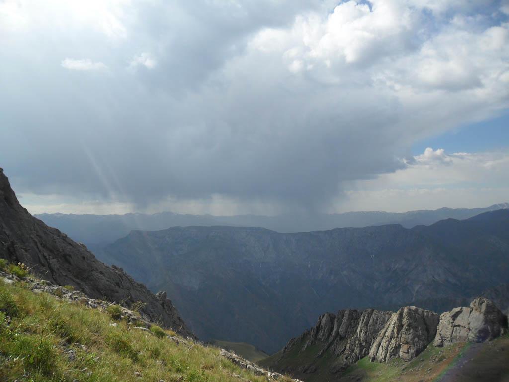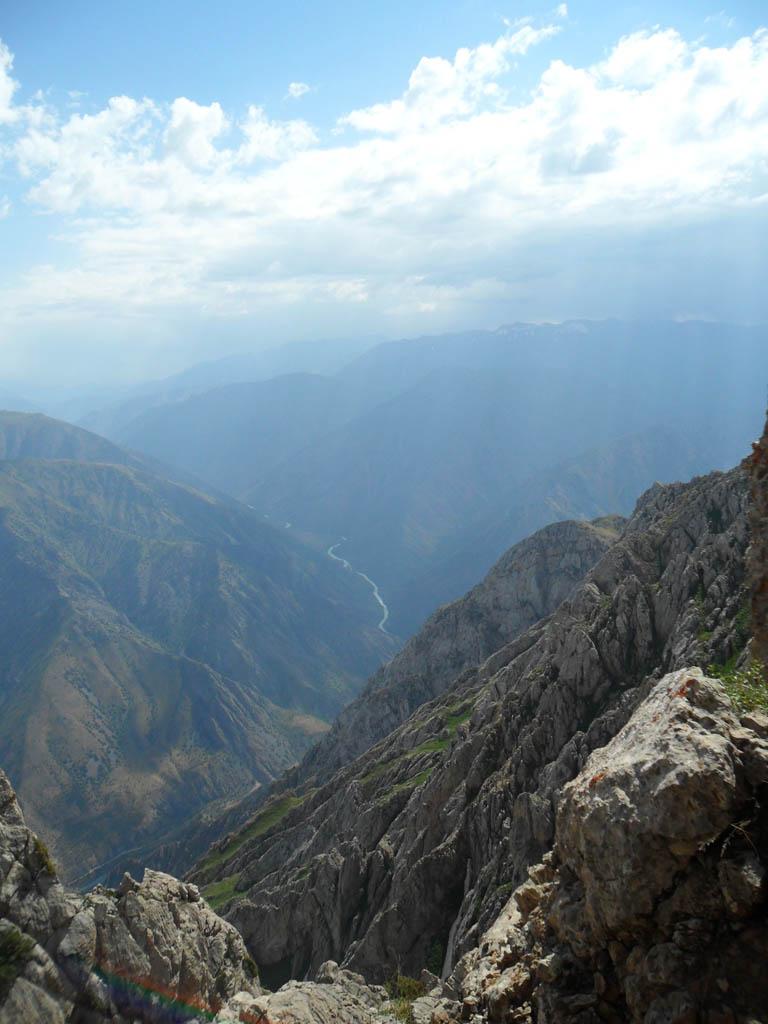 Местоположение: Бельдерсай, Кумбель. Взгляд в сторону: Большого Чимгана, Мингбулака, Кызылнуры, Джара, долины Нурекаты, долины Беркаты, перевала Тахта, хребтов Мирзабай, Минджилки, Учташа. Фотографии с расстояния ~10 метров.