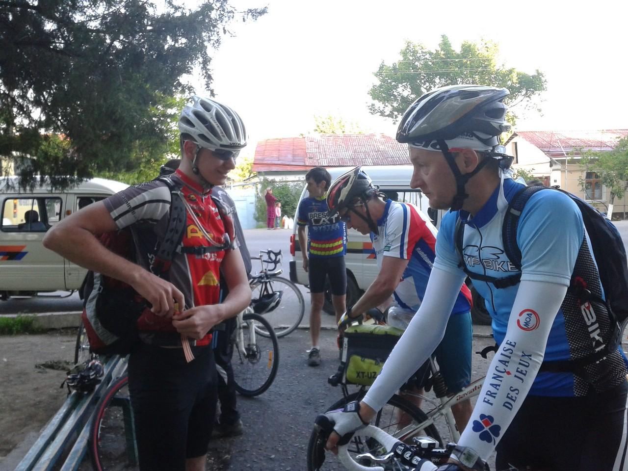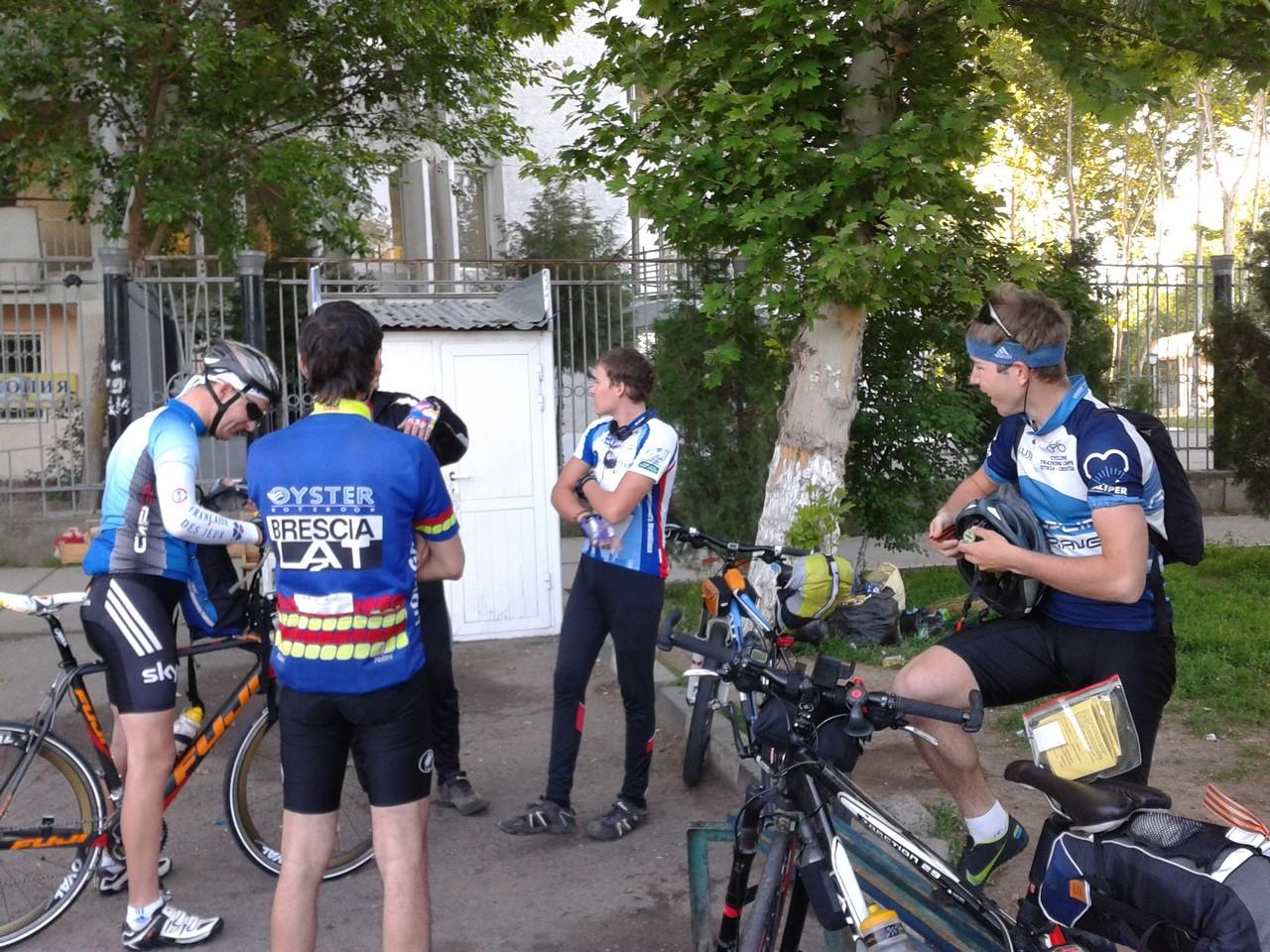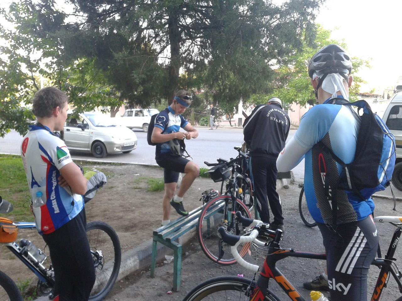 Часть 1. Подъезжаю к точке старта в 6:30. Там только Артем (парнишка на шоссейнике) и Олег, затем постепенно подтягиваются остальные, всего собралось 10 человек. Фотографируемся, желаем друг другу удачи и стартуем ровно в 7 часов. Дима Новиков едет впереди, я за ним, за мной едут Серега Филимонов, Артем и Макс (старший сын Рафхата). Постепенно они отстают, через 15-20 минут после старта мы с Димой уже едем в одиночестве. Дует встречный ветер, почти не топим, чтобы не перегрузить мышцы в самом начале бревета и, как говорит Дима, не выйти в "красную зону". Дима проехал на этой неделе часть маршрута бревета (до Алмалыка), поэтому знает направление ветра и расположение кафешек в этой части ![]() В Чирчик заезжаем ровно в 8 часов утра. Проезжаем через город, выезжаем к плотине, средняя скорость к этому времени составляет как раз около 25 км/ч. Сворачиваем на трассу в сторону Ташкента, здесь дует попутный ветер, едем по очереди на колесе, сменяясь каждые 5 км. Скорость около 37-38 км/ч. Километров через 20 потихоньку начинаю голодать, подкрепляюсь мармеладками и печеньками, пока еду на колесе. Незаметно доезжаем до Бектемира, поворачиваем налево в сторону Тойтепы. Здесь попутного ветра уже нет, но и встречного вроде бы тоже нет, держим скорость около 32 км/ч. На последних километрах перед Тойтепой начинаю уставать, побаливает спина, потихоньку забиваются мышцы. Наконец, на 83-м километре, перед въездом в Тойтепу, останавливаемся в неприметной столовой. На часах 9:42 (2:42 с момента старта), средняя скорость чуть более 30 км/ч, пока что все идет по плану. Если будем и дальше держать такую среднюю скорость, то, с учетом пары часов на остановки, укладываемся в 12 часов. Заказываем лагман, колу, отдыхаем и подкрепляемся. В 10:05 по дороге пролетает Джамшид, остальных пока нет. Дима, увидел Джамшида, говорит, что нужно во что бы то ни стало его обогнать. Быстро доедаем, собираемся и уже в 10:12 выезжаем. Усталости почти не чувствуется, как будто предыдущих километров и не было. Проезжаем Тойтепу, сворачиваем налево в сторону Алмалыка. Идет небольшой подъем, Дима говорит, что на этом участке должен дуть сильный встречный ветер, но дует попутный - видимо, сегодня ветер решил изменить направление на противоположное. Продолжаем поочередно ехать на колесе, держим скорость не ниже 35 км/ч. Вскоре встречаем Джамшида - он остановился под деревом и подкрепляется бутербродами. Останавливаемся, здороваемся, желаем удачи и двигаемся дальше. Дима говорит, что, если повезет с ветром, уложимся даже в 11 часов - на тот момент это казалось вполне реальным ![]() Здесь дует встречный ветер - не слишком сильный, но от этого не менее противный. Уже километров через 10-15 начинаю пыхтеть, уставать. Когда еду впереди, Дима подгоняет меня, чтобы держал скорость 30+. Это удается очень тяжело. В последнюю свою смену устаю окончательно, еще и ветер усиливается, еду не выше 25 км/ч. Отрабатываю смену, сажусь на колесо, но сил ехать даже на колесе уже нет. На 138-м километре отстаю от Димы, сажусь на обочину, отдыхаю. Через 7 минут приезжает Джамшид, спрашивает, давно ли уехал Дима, и едет дальше. Вскоре я тоже трогаюсь, кое-как плетусь со скоростью 24-25 км/ч. Доезжаю до Буки (это примерно 151-й км), вижу, как Джамшид затарился водой в придорожной кафешке и разливает ее по бутылкам. Тоже останавливаюсь, покупаю воду и колу, разливаю по бутылкам, 