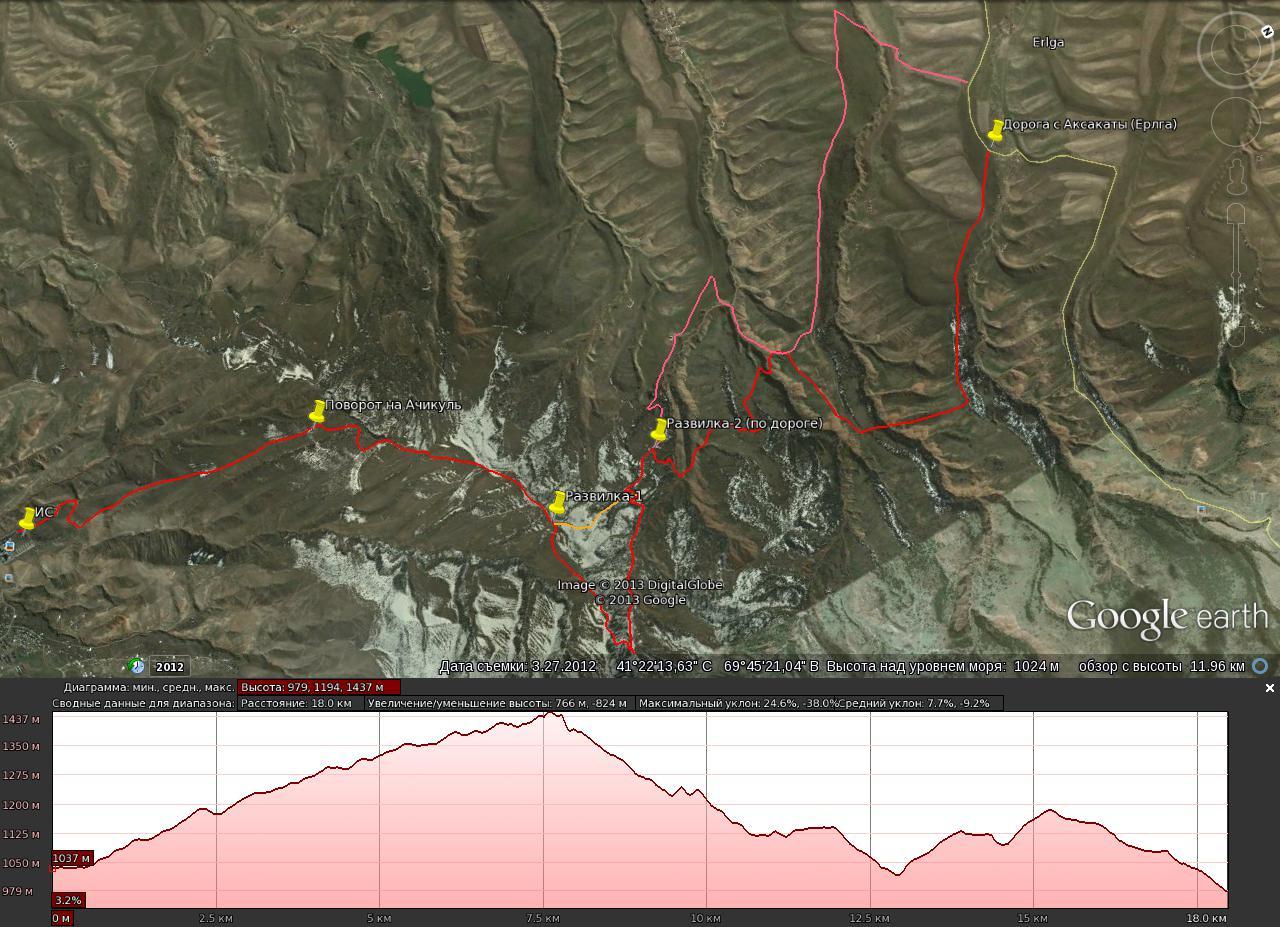 Набор плавный - дорога без промоин... На картинке с рельефом этот гребень чуть левее...