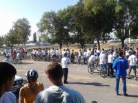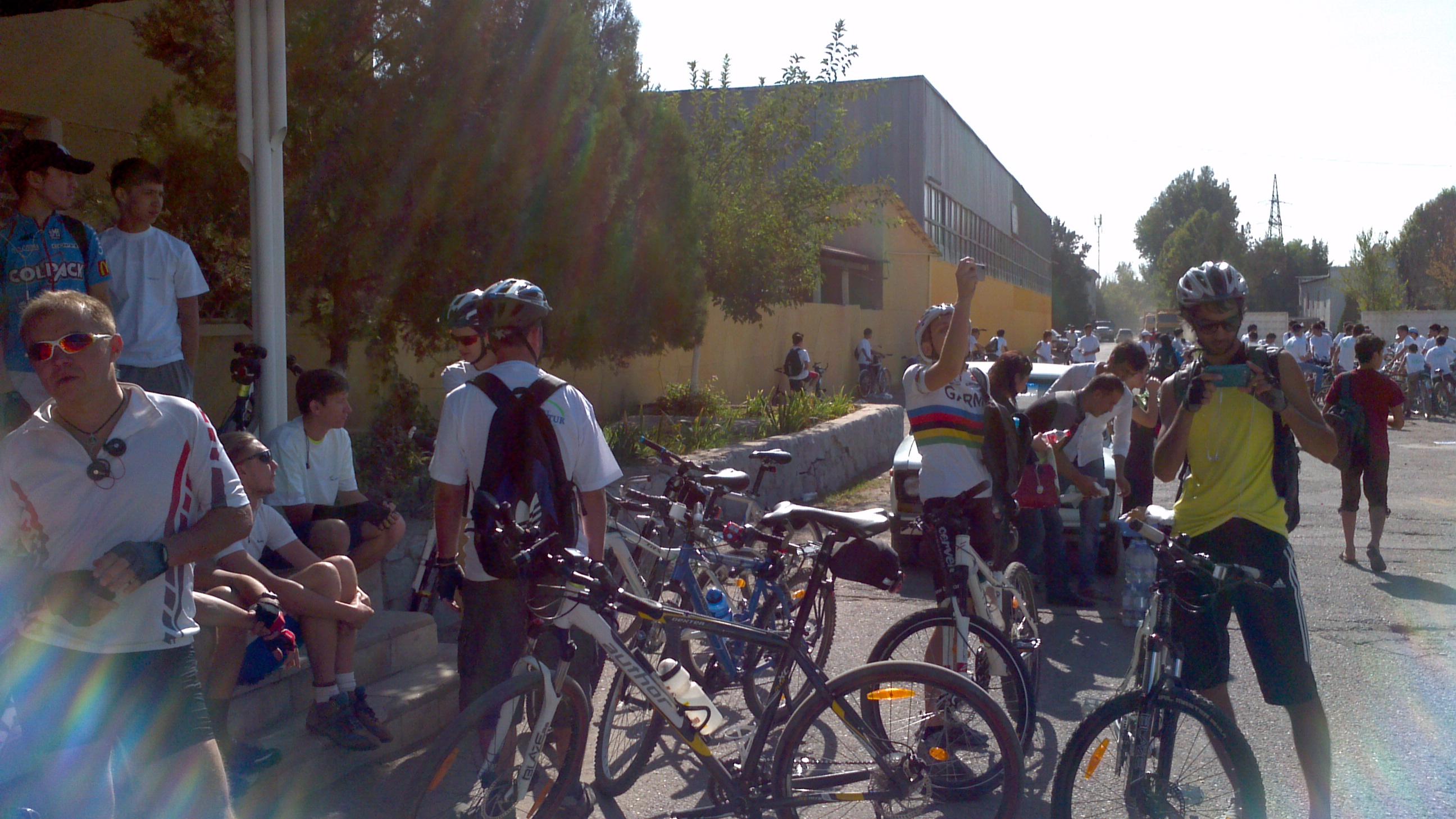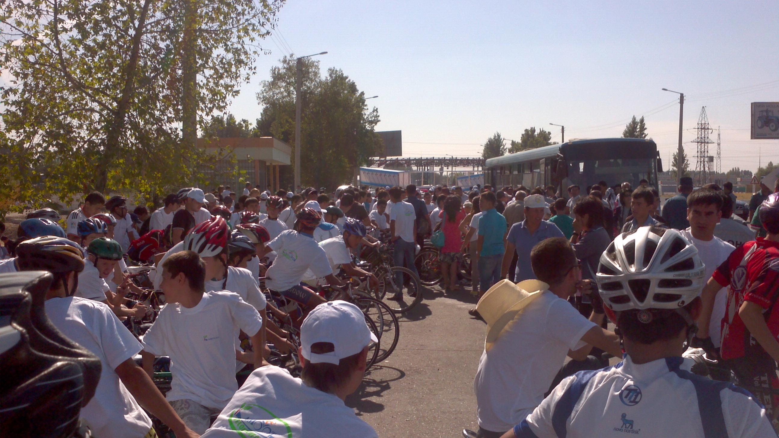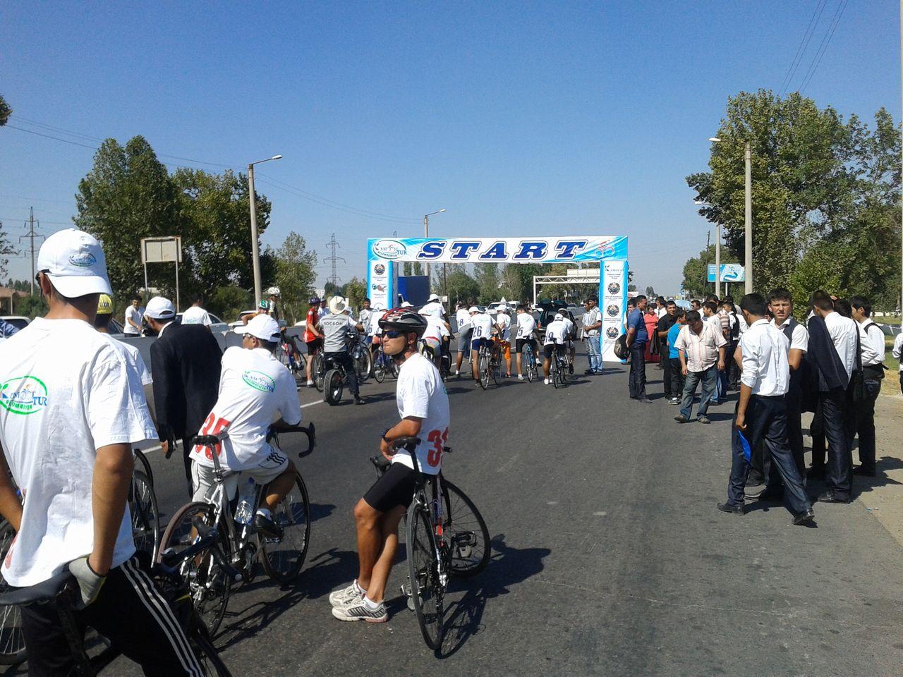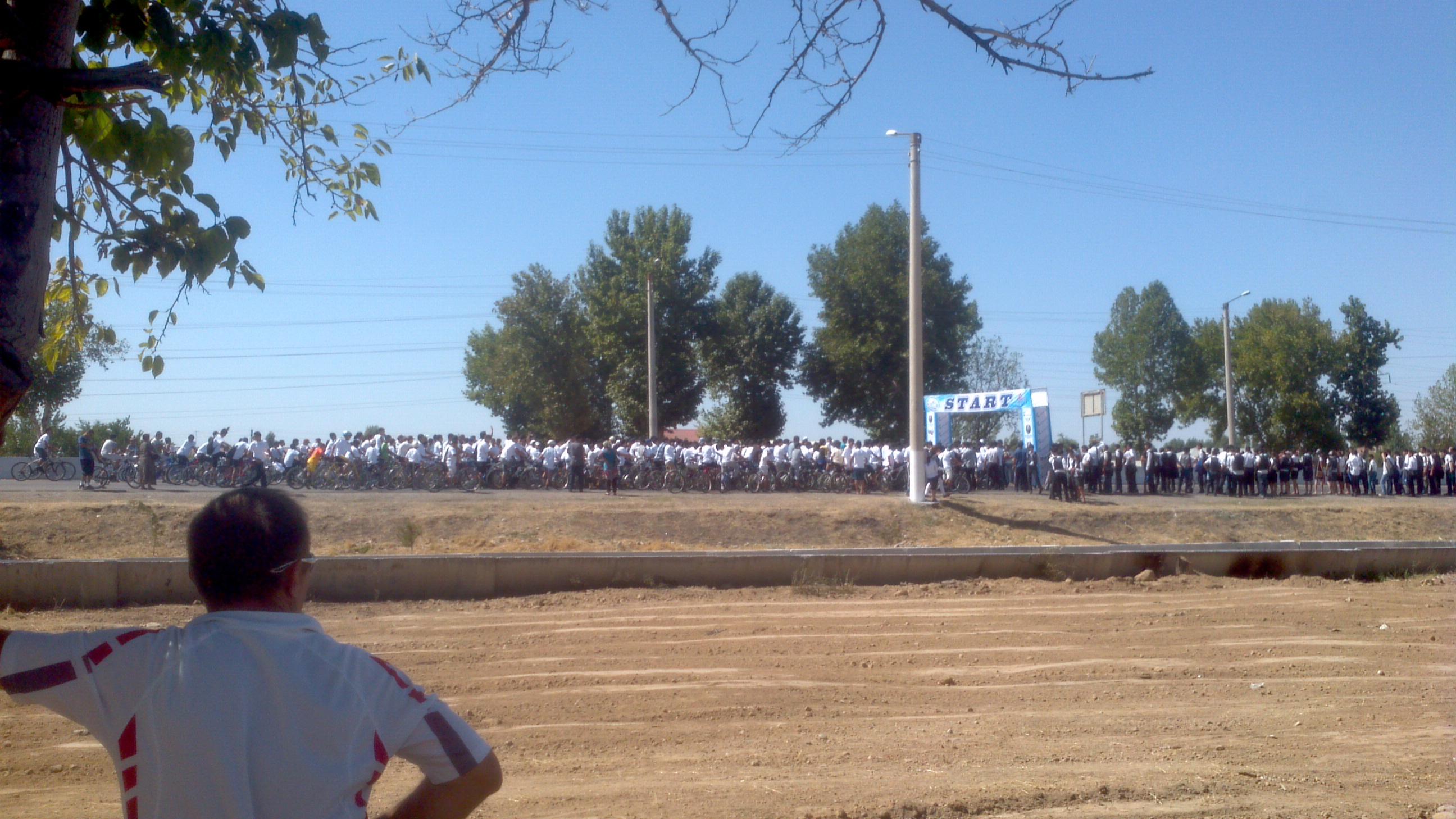 В общем, собрались мы утром возле Паркентского и в 8:15 двинулись к Рохату. Приехали, зарегистрировались (непонятно зачем, нас просто записали в журнал и все). Стали ждать старта. Народу была куча, периодически приезжали грузовики с великами (с областей), на автобусах привозили народ, старт задерживался. Еще до старта было два происшествия - пацана сбили на пешеходном переходе, дежурившая скорая сразу же увезла его, и нексия въехала в зад жигуленку. Народу было, наверно, человек 200-300. Стартовали только ближе к 12. Первой группой выехали спортсмены 15-17 лет, минут через 5 выпустили вторую группу - спортсменов старше 18 лет - около 15-20 человек. Они все были в футболках с номерами и участвовали в соревновании, нам ничего не выдали и, соответственно, мы должны были ехать просто как массовка. Я, Андрей, Сергей и Сарвар пристроились сбоку от второй группы и стартовали вместе с ними. Поначалу все втопили под 40-45 км/ч, затем успокоились и стали ехать около 35-40 км/ч. Через несколько километров после старта я пробился в голову пелотона, на одном участке даже попытался оторваться на лежаке на скорости под 50 км/ч, но не получилось, они все уселись на колесо, пришлось сбавить темп. Они стали орать - ты без номера, не имеешь права вмешиваться в борьбу, не мешай, и больше вперед не пускали. Пришлось ехать в конце группы или сбоку от нее, вместе с Андреем, Сергеем и Сарваром. Ближе к финишу все втопили, здесь мне удалось обогнать несколько человек, в итоге заехал в первой десятке (примерно 8 или 9 по счету). Время составило 19:30, средняя скорость около 36-37 км/ч. Жаль, что Димы не было, с ним вдвоем был бы шанс оторваться от пелотона, а в одиночку ничего не сделать, тупо не пускают вперед. Обидно.
