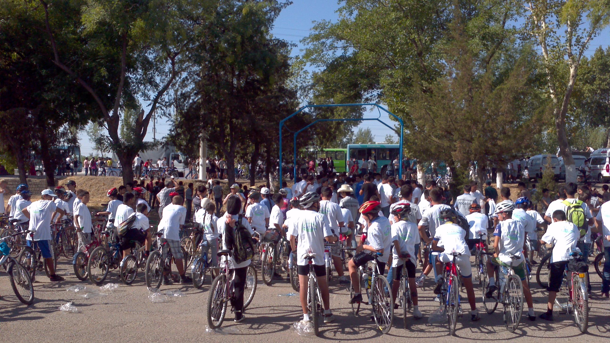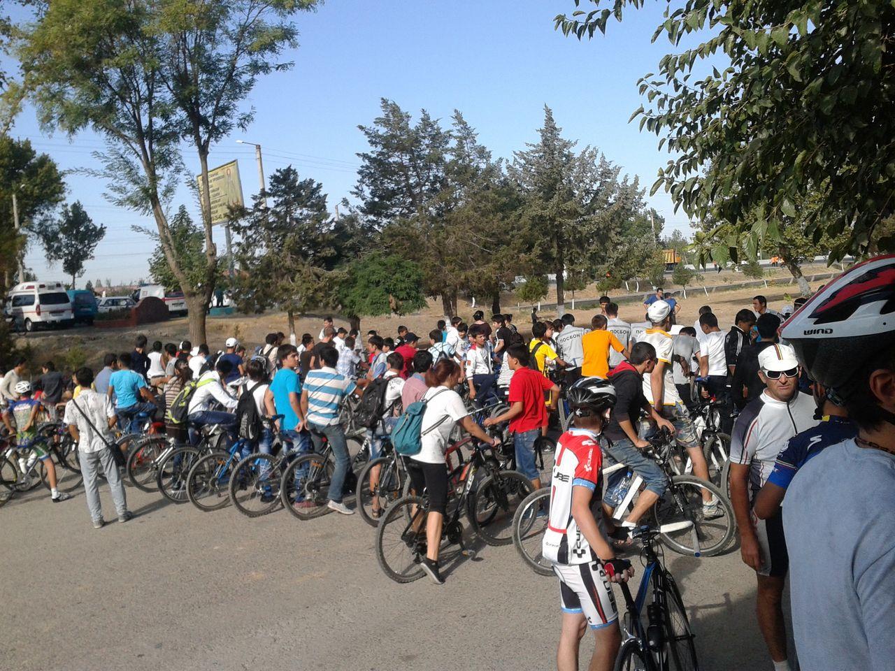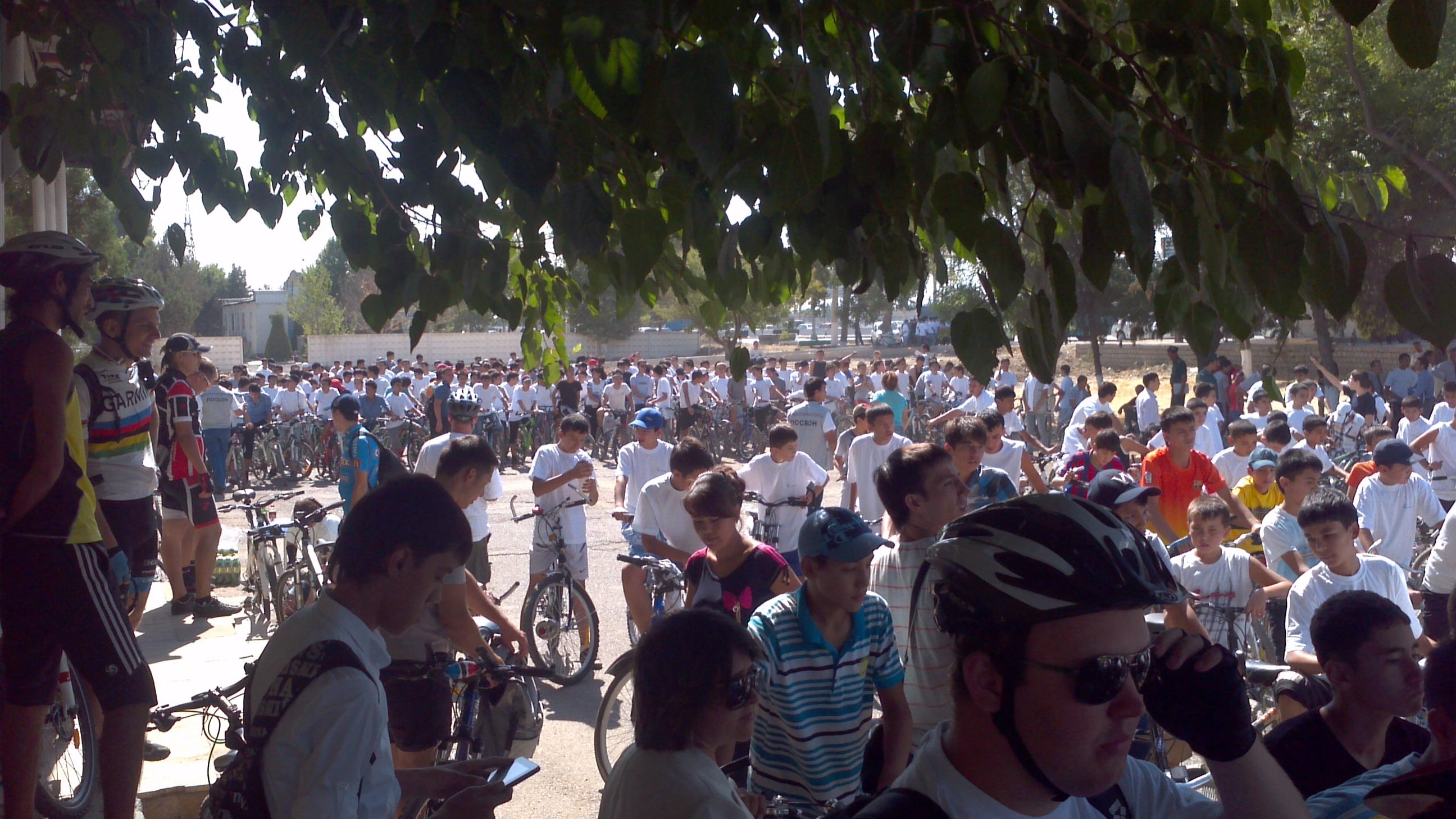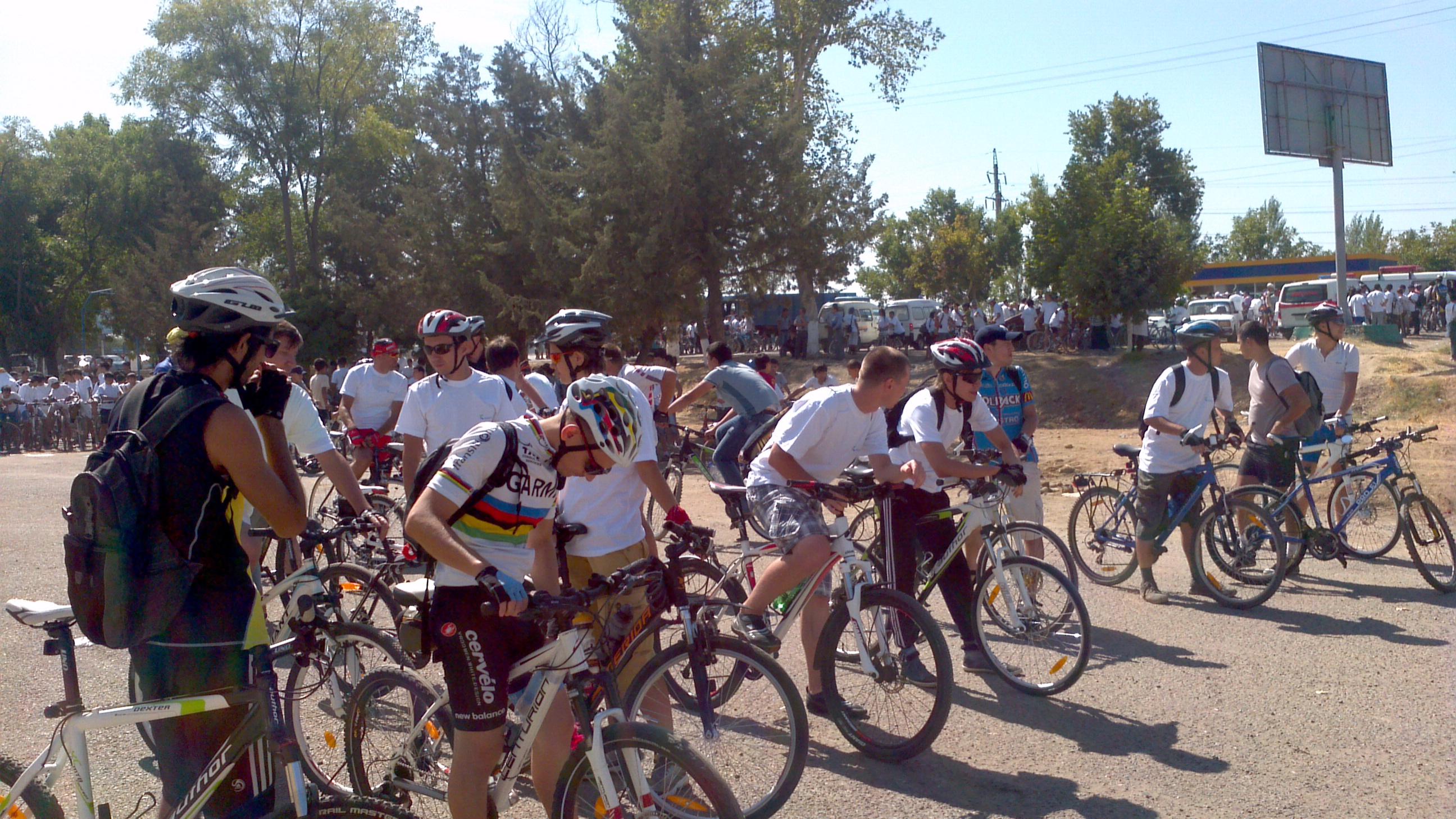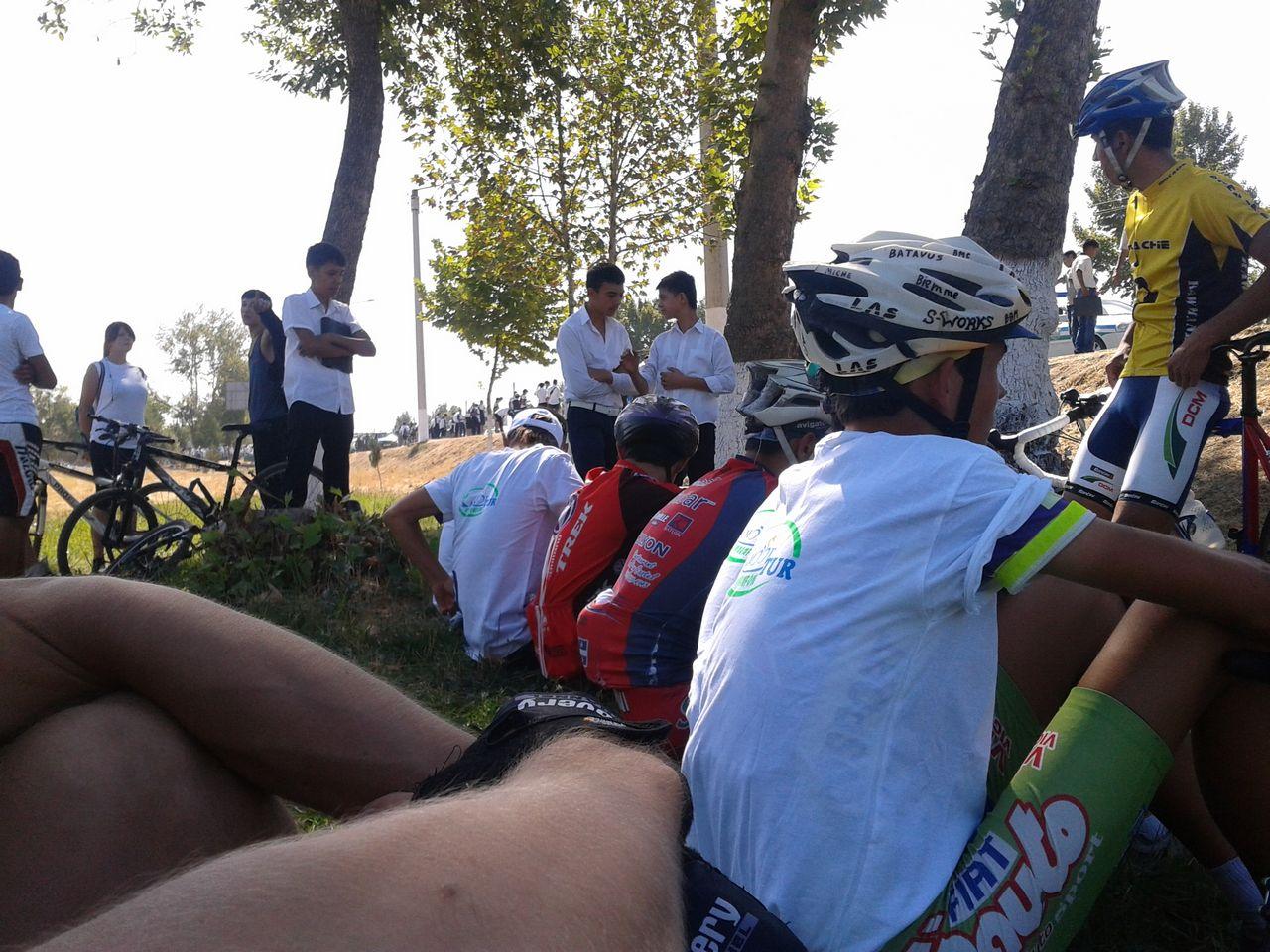 В общем, собрались мы утром возле Паркентского и в 8:15 двинулись к Рохату. Приехали, зарегистрировались (непонятно зачем, нас просто записали в журнал и все). Стали ждать старта. Народу была куча, периодически приезжали грузовики с великами (с областей), на автобусах привозили народ, старт задерживался. Еще до старта было два происшествия - пацана сбили на пешеходном переходе, дежурившая скорая сразу же увезла его, и нексия въехала в зад жигуленку. Народу было, наверно, человек 200-300. Стартовали только ближе к 12. Первой группой выехали спортсмены 15-17 лет, минут через 5 выпустили вторую группу - спортсменов старше 18 лет - около 15-20 человек. Они все были в футболках с номерами и участвовали в соревновании, нам ничего не выдали и, соответственно, мы должны были ехать просто как массовка. Я, Андрей, Сергей и Сарвар пристроились сбоку от второй группы и стартовали вместе с ними. Поначалу все втопили под 40-45 км/ч, затем успокоились и стали ехать около 35-40 км/ч. Через несколько километров после старта я пробился в голову пелотона, на одном участке даже попытался оторваться на лежаке на скорости под 50 км/ч, но не получилось, они все уселись на колесо, пришлось сбавить темп. Они стали орать - ты без номера, не имеешь права вмешиваться в борьбу, не мешай, и больше вперед не пускали. Пришлось ехать в конце группы или сбоку от нее, вместе с Андреем, Сергеем и Сарваром. Ближе к финишу все втопили, здесь мне удалось обогнать несколько человек, в итоге заехал в первой десятке (примерно 8 или 9 по счету). Время составило 19:30, средняя скорость около 36-37 км/ч. Жаль, что Димы не было, с ним вдвоем был бы шанс оторваться от пелотона, а в одиночку ничего не сделать, тупо не пускают вперед. Обидно.
