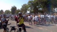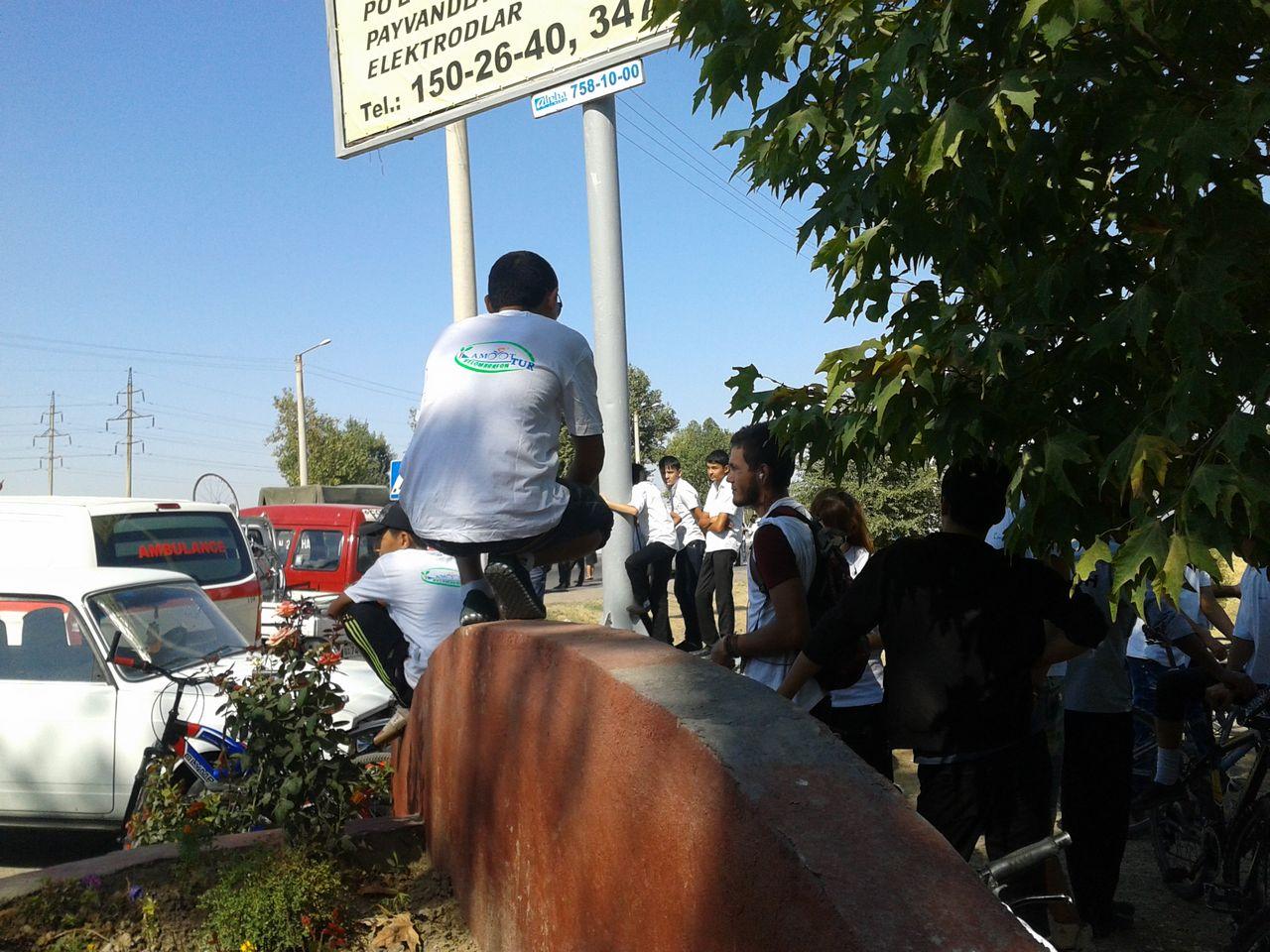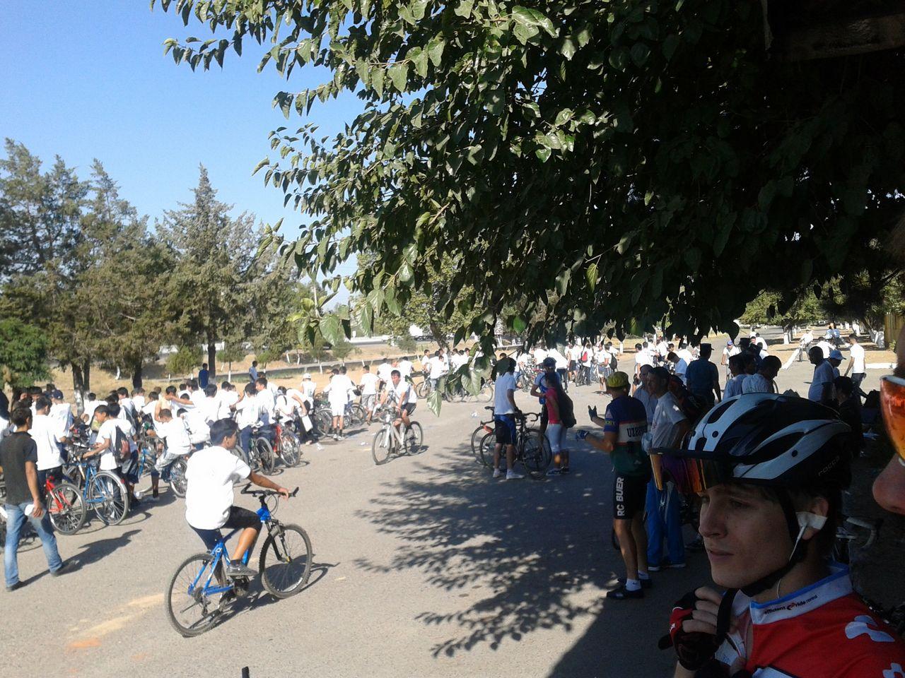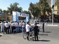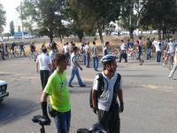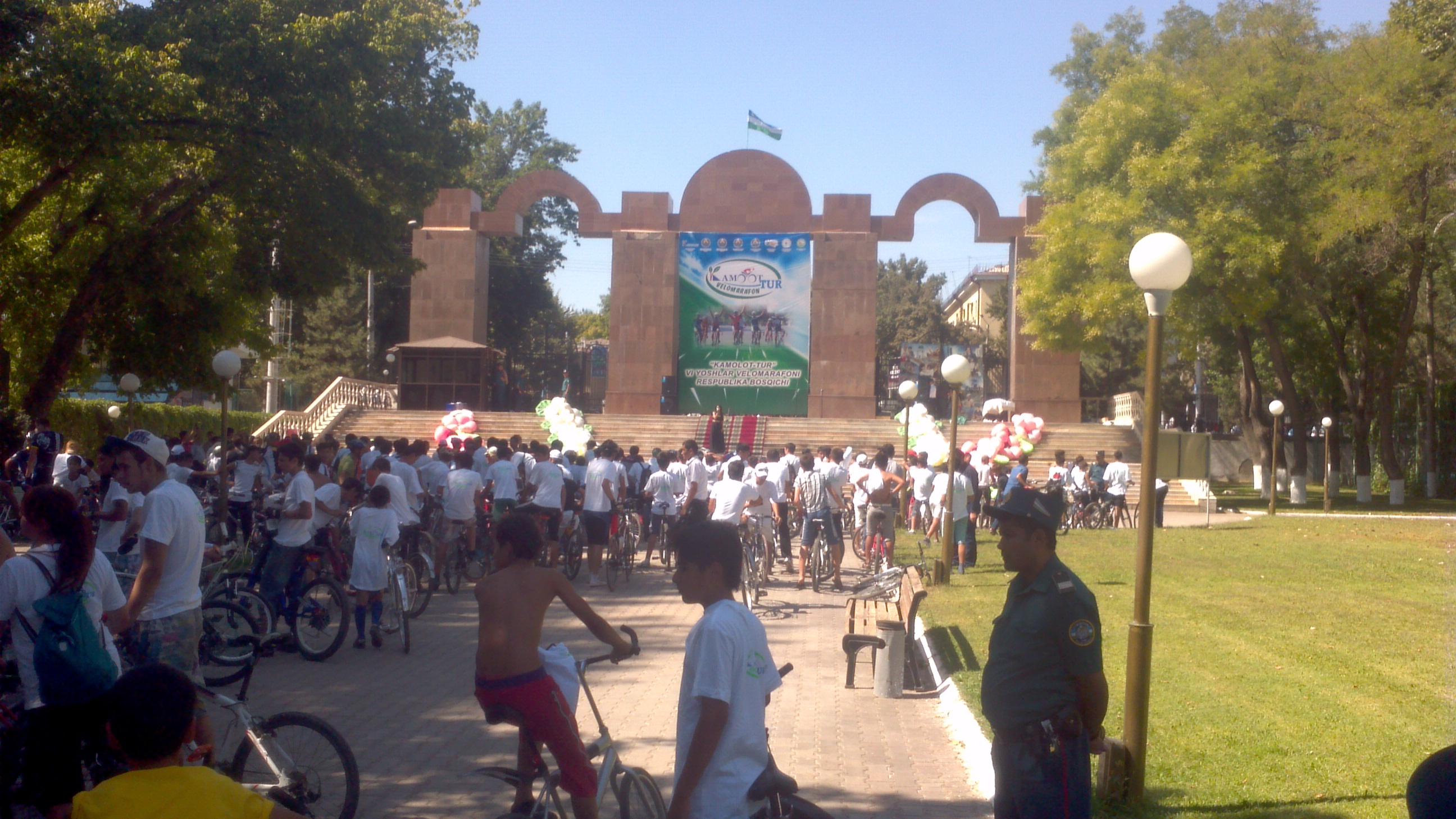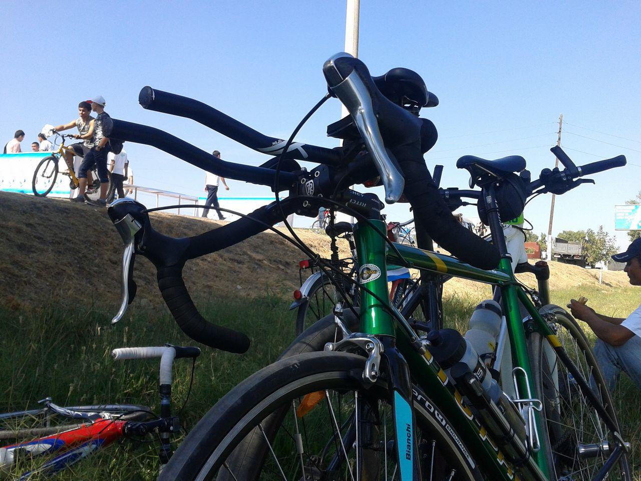 В общем, собрались мы утром возле Паркентского и в 8:15 двинулись к Рохату. Приехали, зарегистрировались (непонятно зачем, нас просто записали в журнал и все). Стали ждать старта. Народу была куча, периодически приезжали грузовики с великами (с областей), на автобусах привозили народ, старт задерживался. Еще до старта было два происшествия - пацана сбили на пешеходном переходе, дежурившая скорая сразу же увезла его, и нексия въехала в зад жигуленку. Народу было, наверно, человек 200-300. Стартовали только ближе к 12. Первой группой выехали спортсмены 15-17 лет, минут через 5 выпустили вторую группу - спортсменов старше 18 лет - около 15-20 человек. Они все были в футболках с номерами и участвовали в соревновании, нам ничего не выдали и, соответственно, мы должны были ехать просто как массовка. Я, Андрей, Сергей и Сарвар пристроились сбоку от второй группы и стартовали вместе с ними. Поначалу все втопили под 40-45 км/ч, затем успокоились и стали ехать около 35-40 км/ч. Через несколько километров после старта я пробился в голову пелотона, на одном участке даже попытался оторваться на лежаке на скорости под 50 км/ч, но не получилось, они все уселись на колесо, пришлось сбавить темп. Они стали орать - ты без номера, не имеешь права вмешиваться в борьбу, не мешай, и больше вперед не пускали. Пришлось ехать в конце группы или сбоку от нее, вместе с Андреем, Сергеем и Сарваром. Ближе к финишу все втопили, здесь мне удалось обогнать несколько человек, в итоге заехал в первой десятке (примерно 8 или 9 по счету). Время составило 19:30, средняя скорость около 36-37 км/ч. Жаль, что Димы не было, с ним вдвоем был бы шанс оторваться от пелотона, а в одиночку ничего не сделать, тупо не пускают вперед. Обидно.