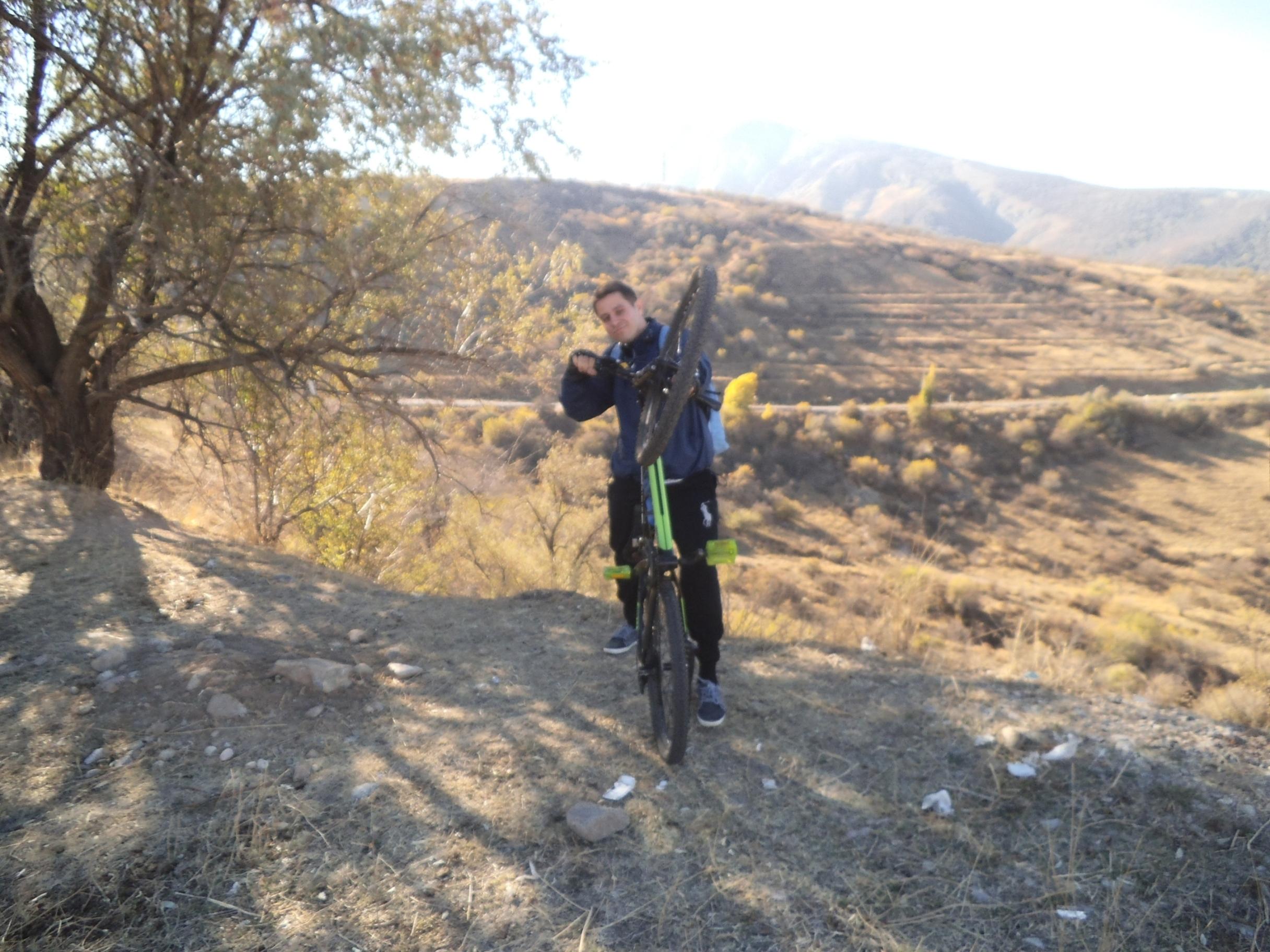 Часть 1. Отлично скатали с Саидом в субботу. Как и планировали, поехали маршрутом Ташкент-Ходжикент (Пирамиды)-Акташ (Санаторий)-Ташкент. Погода стояла замечательная. Солнце радовало своими теплыми лучами с самого утра, предвещая хорошую погоду = хорошую покатуху До Ходжикента доехали на трамвае (эльке, троллейбусе). Как только уже не обзывали нашу всеми любимую электричку). Немного вздремнули, т.к. оба не выспались).В Ходжикент приехали быстро (где-то в 9:40 были на месте). Затарившись бананами и снигерсами в ближайшем магазине, отправились в путь. На подъемах было жарко, но я ехал в куртке, потому что ветер все равно был прохладный. Согласен с Вадимом: осень прекрасна в Чарваке! Воздух свежий, осенний… Деревья желтые, красные, нарядные… Шустро доехали до Пирамид. В Пирамидах народу мало, но все равно приезжают. Видели ребятишек, катающихся на роликах возле отеля (видимо приехали с родителями на осенние каникулы). В Чарваке вода есть, пляж глиняный (нужно было аккуратно прыгать по камням, чтобы не увязнуть в глине). Понравилось сердце из больших камней, выложенное неподалеку от пляжа. Собственно говоря, с ним мы пофоткались). Ухоженные ёлки и летящий парапланерист. Смотрим фотки) |