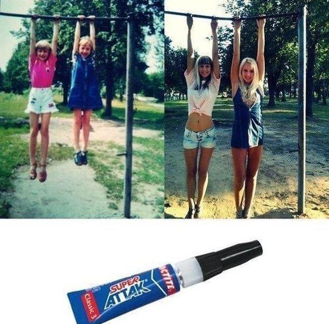модно стало выкладывать фото раньше-сейчас, некоторые с юмором: