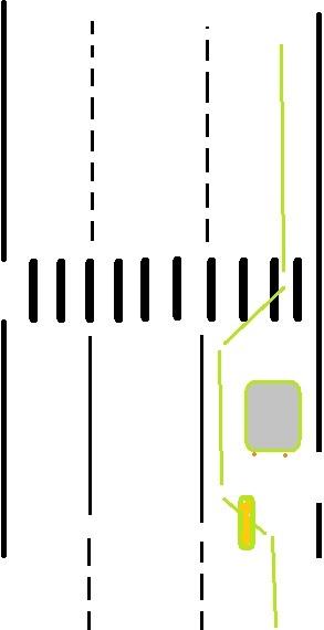 Я еду по правому ряду и собираюсь совершить данный маневр относительно неподвижно стоящего Матиза (отмечен зеленой линией)