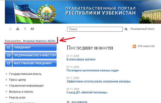 Портал GOV.UZ Портал государственной власти Республики Узбекистан GOV.UZ. Раздел UZINFOCOM ![]() |