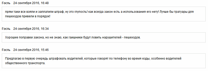 ![]() В Кодекс об административной ответственности внесены поправки о наложении штрафа на пешеходов за пользование телефонам или прослушивание музыки. В статью 138 Кодекса об административной ответственности Узбекистана внесены поправки, предусматривающие штрафы для пешеходов, нарушающих ПДД. Закон о внесении изменений в кодекс 23 сентября подписал и. о. президента Шавкат Мирзиёев. Документ находится в распоряжении UZ24. Поправки вступили в силу с 24 сентября. Согласно новым поправкам, пользование телефоном, чтение книг или периодических изданий, просмотр видеоматериалов и прослушивание аудиоматериалов, а также пользование иными электронными средствами, отвлекающими внимание при движении пешеходов по проезжей части, в том числе и по пешеходному переходу, влечет за собой наложение штрафа в сумме 1/3 минимального размера заработной платы. (с 1 октября - 49925 сумов). Кроме того, в статью также внесены поправки, влекущие штраф за высовывание пассажиром частей тела (кроме рук) из салона во время движения транспортного средства в размере 1 минимального размера заработной платы или 149775 сумов (после повышения с 1 октября). Цитата: