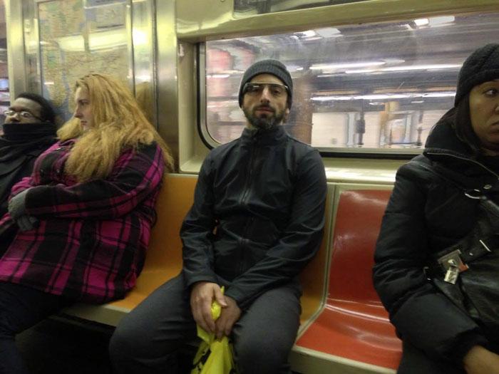 Сергей Брин,основатель Google. Обыкновенный гений. Состояние 34,4 млрд $. Едет в метро по делам.