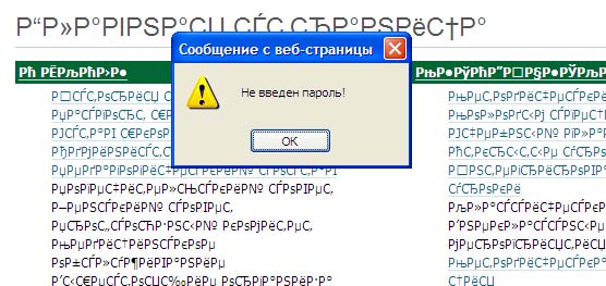 Да, точно. Что и следовало ожидать. Азим опять прав. При выборе в браузере (IE8) кодировки по умолчанию Windows-1251 весь шаблон отображается кракозябрами, а ошибка авторизации нет: