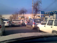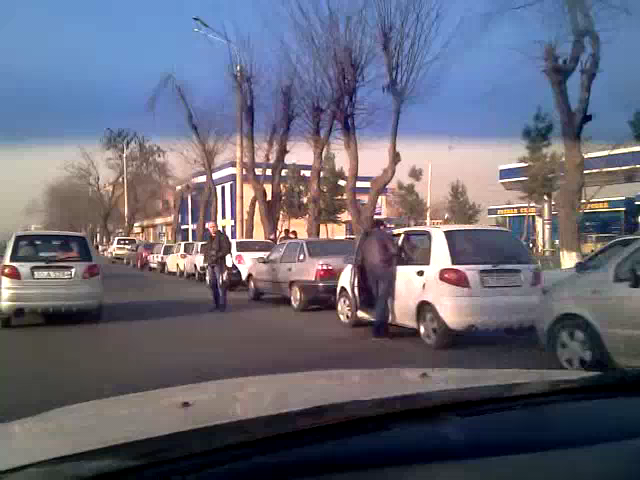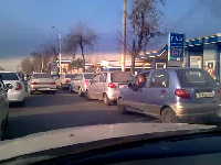 вот тут уже видно откуда очередь начинается (с соседней улицы) :-) ну а дальше хуже а потом оказалось что оказывается заезжают на АЗС и с другой стороны (откуда должен быть выезд) :-) "да, нет, нет никакого кризиса. все отлично. бензин всегда можно достать" - успокаивают некоторые.