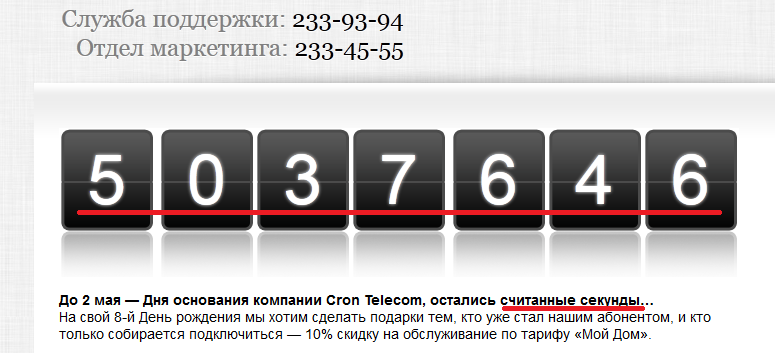 | Cron Telecom Раздел провайдера Cron Telecom |