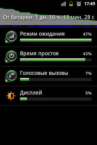 Кстати, тоже самое как и у многих (виджет врёт наверное, но показывает 47%). Однако, ползунок в настройках яркости экрана был вообще на самой левой позиции, т.е. на нуле. Звонят редко, я вообще стараюсь не звонить, но батарейка съедена будет полностью (я так думаю) за двое суток... ![]() Раскочегарилась батарея или действительно - самый обжора во всем телефоне экран - можно будет узнать послезавтра. Верну обратно на максимальную яркость или 90% хотя бы и посмотрю... Последний раз редактировалось Concerned; 20.01.2012 в 17:59. |
