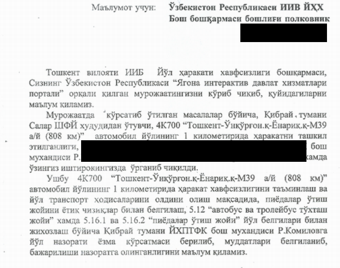 Ваше заявление принято и будет рассмотрено в установленном порядке" Когда? Через год? До сих пор нет официального ответа. Получается, что Законодательная палата Олий Мажлиса нарушает закон об обращениях граждан в части сроков рассмотрения обращений? |
