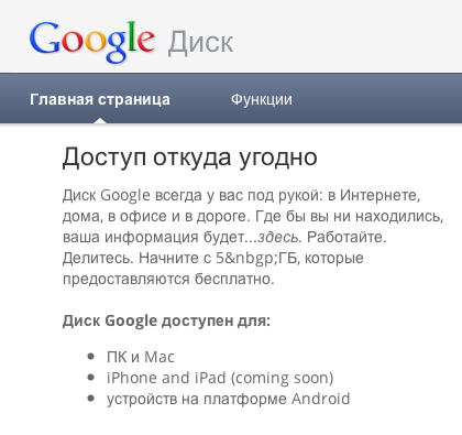 Видать Гугл оооочень спешил запустить Диск (https://drive.google.com/) —