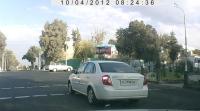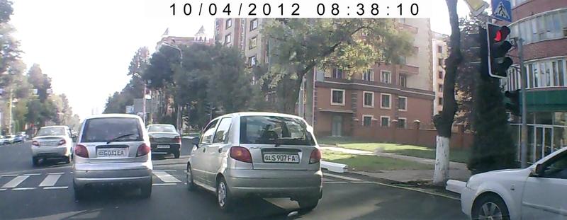 09:20. Перекресток А.Тимура у к/т Казахстан. Со средней полосы зажимает с целью поворота налево Epica 01 X 356 CA, пересекая все сплошные полосы, только что не выезжая на пешеходный переход (слишком уж далеко)...