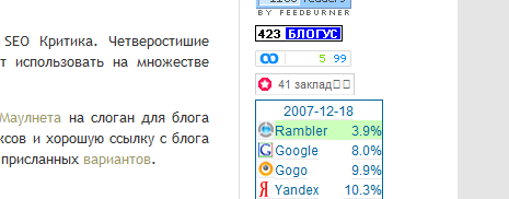 конкретный пример. ну как объяснить? фигачу сайт. хочу туда поставить информер мемори.ру о том скока закладок на данный сайт. взял скрипт с сайта мемори.ру и воткнул на свой сайт. в ФФ все ЧЕТКО пашет и показывает что 1 закладка а в ИЕ воще тока пишет слово "заклад". по плану там должно меняцца окончание в зависимости от кол-ва закладок. но мало того что ничего не меняецца так еще и кол-во не показывает. пишет ошибка скрипта. я думал это я криворукий но потом выяснил что на др сайте где уже 40 закладок в ФФ все работает а в ИЕ так же как у меня - нет. вот код: Код: