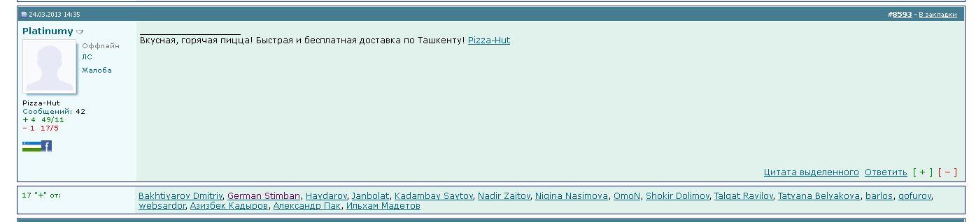 Оффтоп: img.uforum.uz работает через пень колоду.. ладно, подождем-с... трудные времена, видно, настали...а теперь все понятно.. оказывается это надо было очень долго ждать чтобы они загрузились... просто раньше такого никогда не испытывал на форуме ![]()